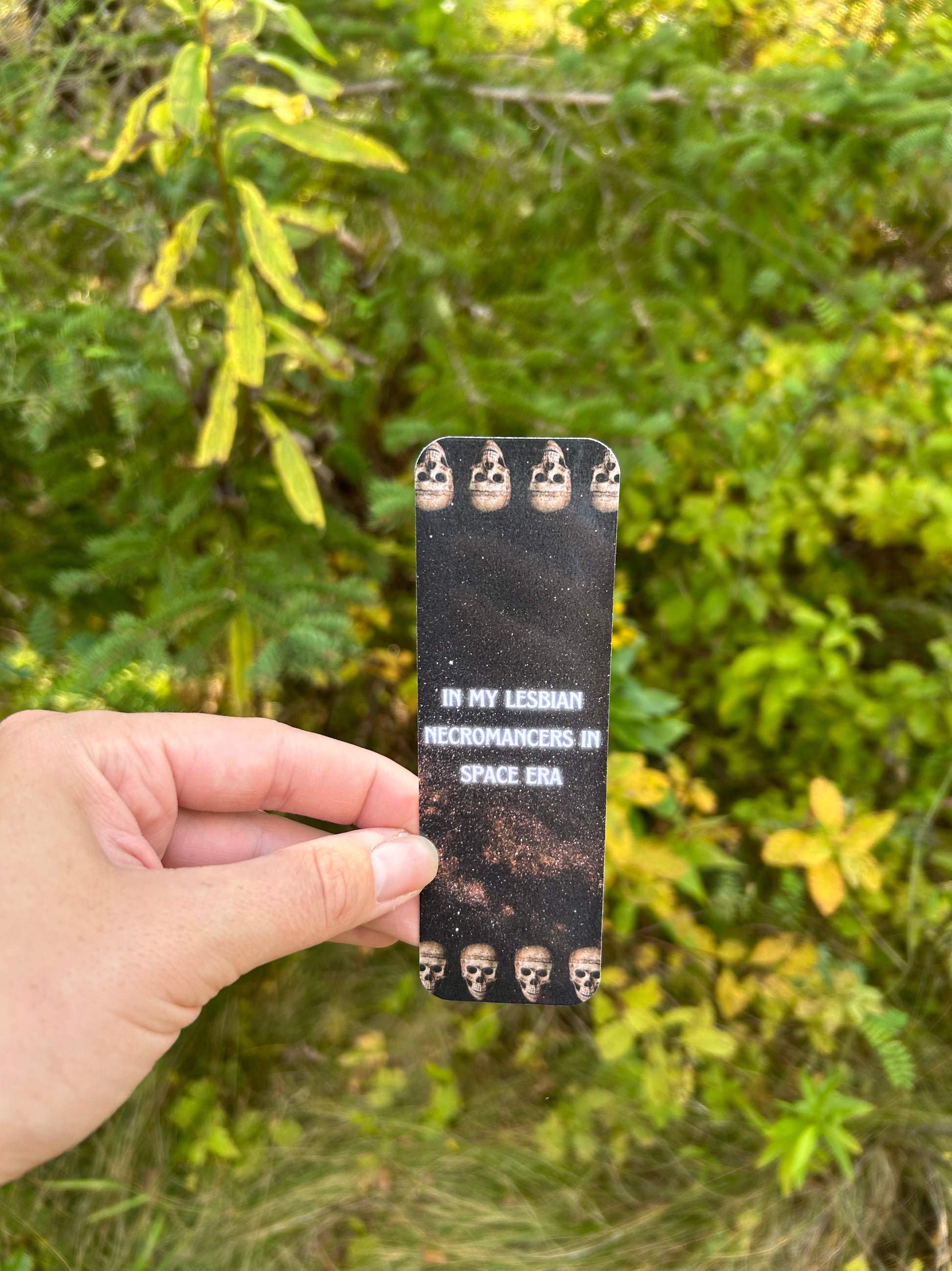 Embrace the chaos with this bookmark, a must-have for any fan of Gideon the Ninth. Featuring a design inspired by the book's imagery, this bookmark is perfect for those who crave a touch of necromantic flair in their reading adventures. Handcrafted in Vermont, USA, each bookmark is unique and adds a touch of gothic elegance to your library.