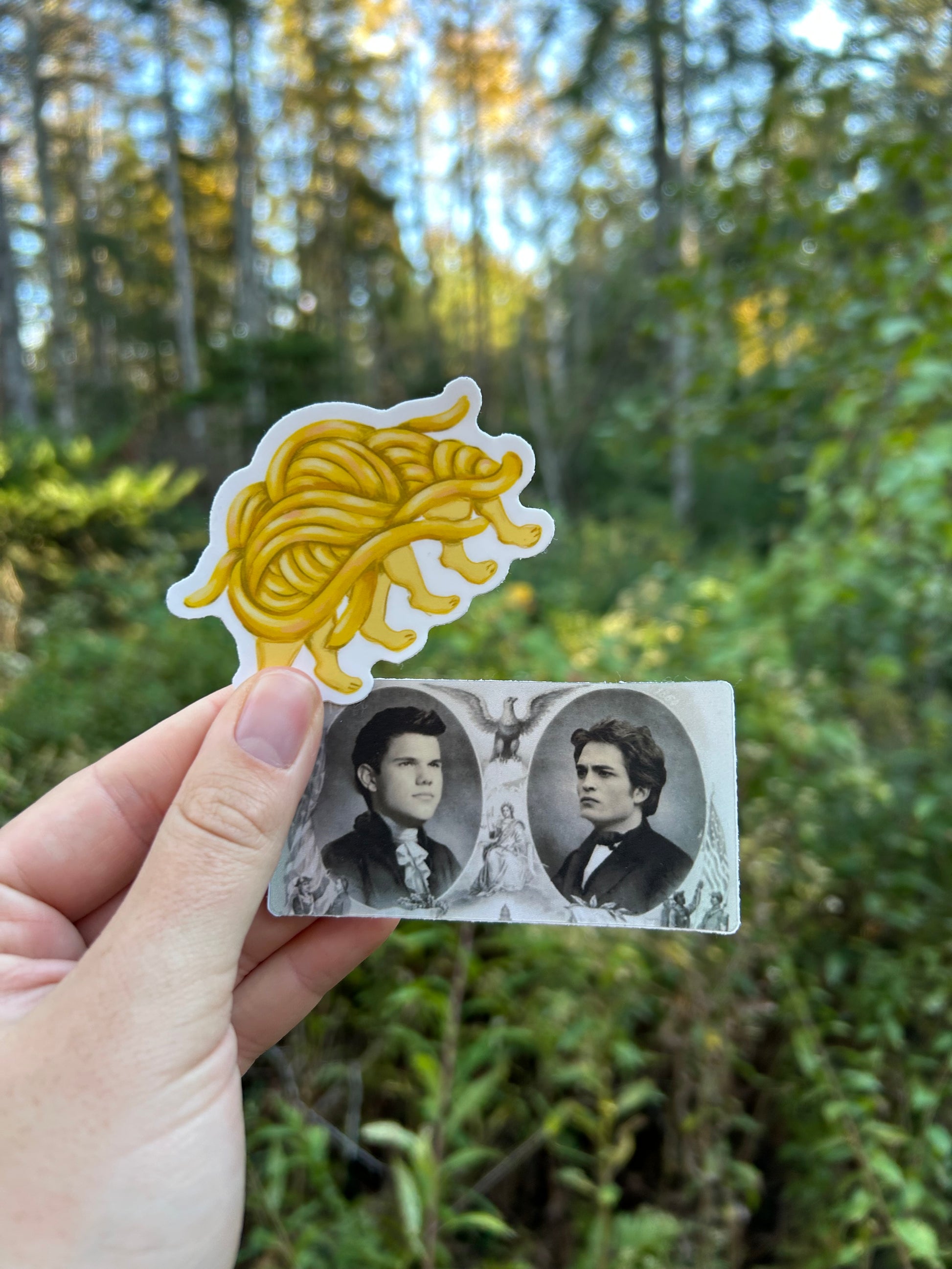 Don't forget Noodle! This sticker features Noodle, the six-legged dog from Nona the Ninth, reimagined as a delicious noodle-based creature. A must-have for any fan of Tamsyn Muir's series, this sticker is perfect for adding a touch of humor to your laptop, water bottle, or anywhere else you need a dose of noodle-y goodness.